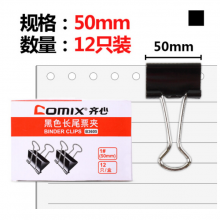 齐心(COMIX) 12只装50mm黑色长尾夹/票据夹/燕尾夹/铁夹子 办公文具B3605