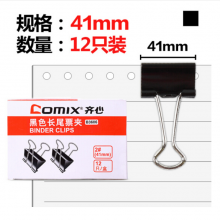 齐心(COMIX)B3606 41mm黑色长尾夹/票据夹/燕尾夹/铁夹子 12只/盒