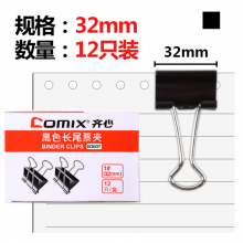 齐心(COMIX) 12只装32mm黑色长尾夹/票据夹/燕尾夹/铁夹子 办公文具 B3607
