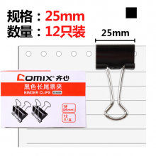 齐心(COMIX)12只装25mm黑色长尾夹/票据夹/燕尾夹/铁夹子 办公文具 B3608