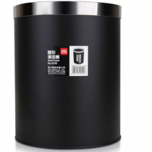 得力(deli) 9199 办公家居经典圆形直桶不锈钢垃圾 桶/纸篓/清洁桶 黑色 带压圈