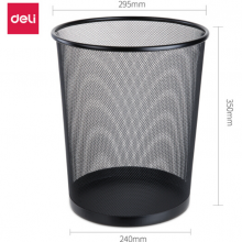 得力(deli)φ29.5cm大号金属网状圆纸篓 办公家用垃圾桶 黑色9189