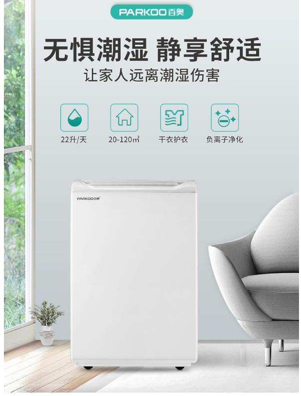 • 百奥 除湿机/抽湿机 22升/天除湿量 适用60-120平方米 家用地下室别墅静音吸湿器 YDA-8