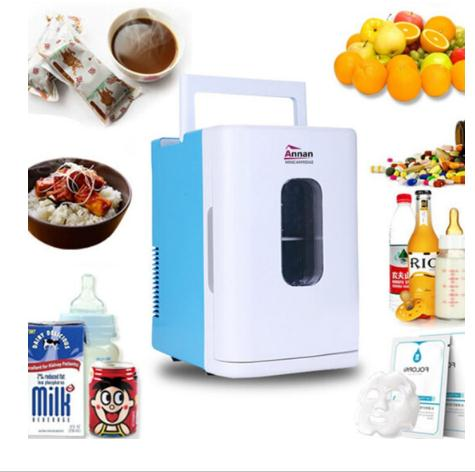安南10L车载冰箱车家两用蓝色便携式手提可爱学生宿舍小型冰箱制冷加热冷藏保鲜面膜 车家两用
