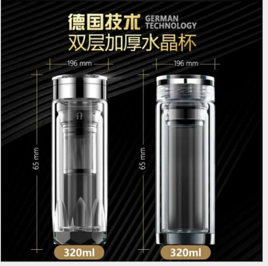 • 钻石水晶杯高档商务高硼硅双层玻璃杯子