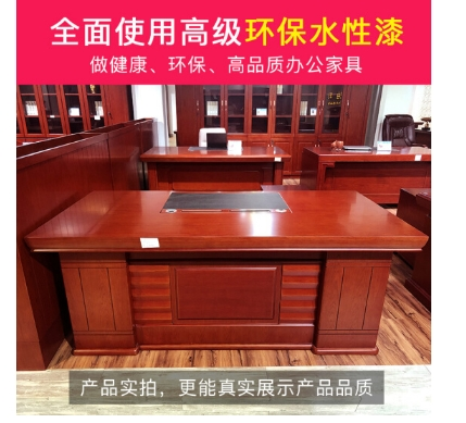 老板桌新中式办公桌简约现代总裁桌大班台桌椅组合单人办公室家具 1633款 (1.6米)直边 新胡桃色