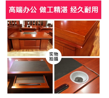 • 老板桌新中式办公桌简约现代总裁桌大班台桌椅组合单人办公室家具 1633款 (1.6米)直边 新胡桃色