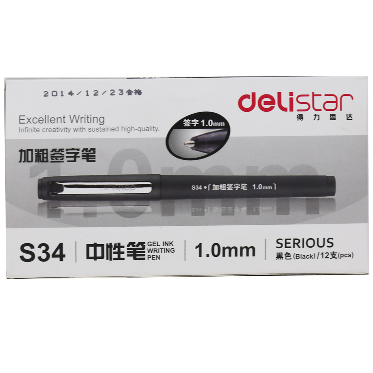 • 得力S34中性笔1.0mm子弹头(黑)12支装