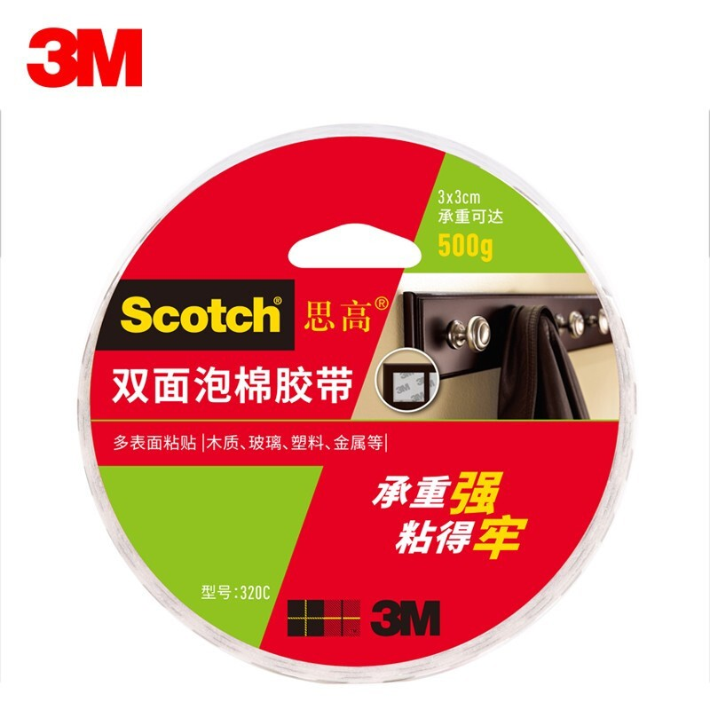 • 3M 双面泡棉胶带320C 耐高温不易留胶 挂钩门牌墙面粘贴固定18mm*5.5m 单卷装