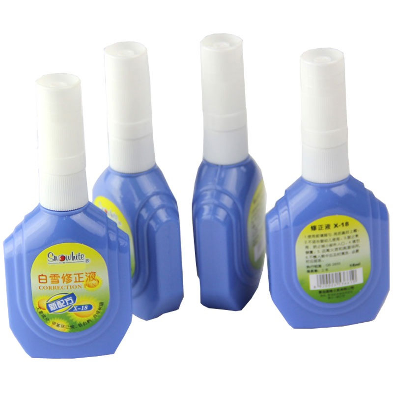 • 白雪(snowhite)X-18修正液18ml学生涂改液学习办公改正液多用途修正笔蓝瓶单支装