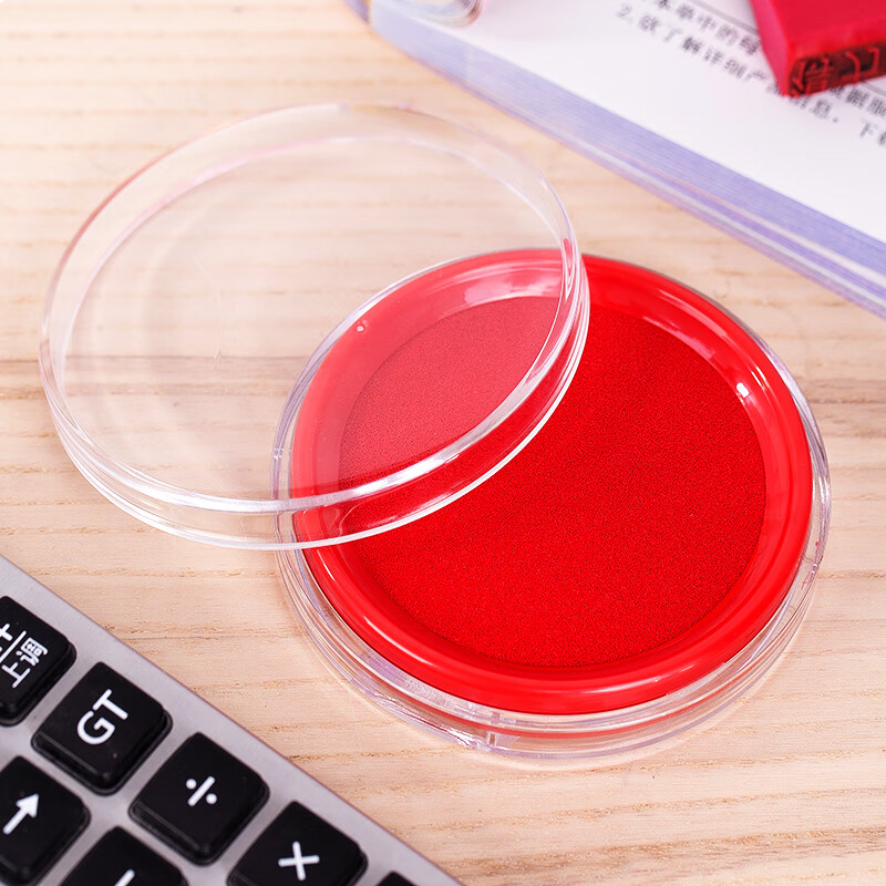 • 得力(deli)φ80mm透明圆形财务快干印台印泥 办公用品 红色9863